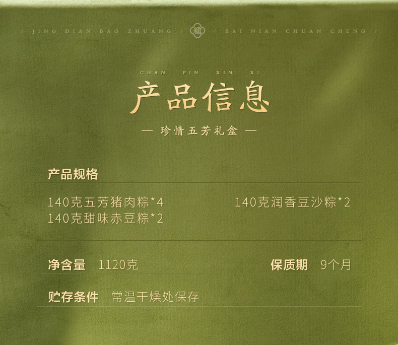 【产品介绍】五芳斋珍情五芳粽子礼盒1120g